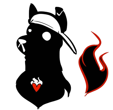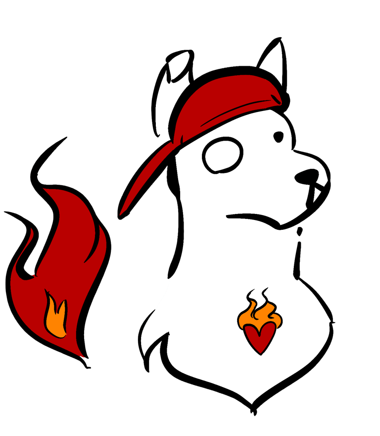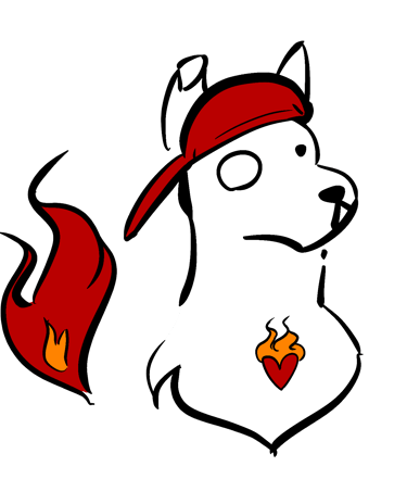 Dogs are loyal, determined, and embrace companionship, reflecting our vision as a team. His backwards cap shows that we are not so far reserved as to not be able to have fun, and remember why we began this in the first place. And finally, the most important aspect, his flaming heart.